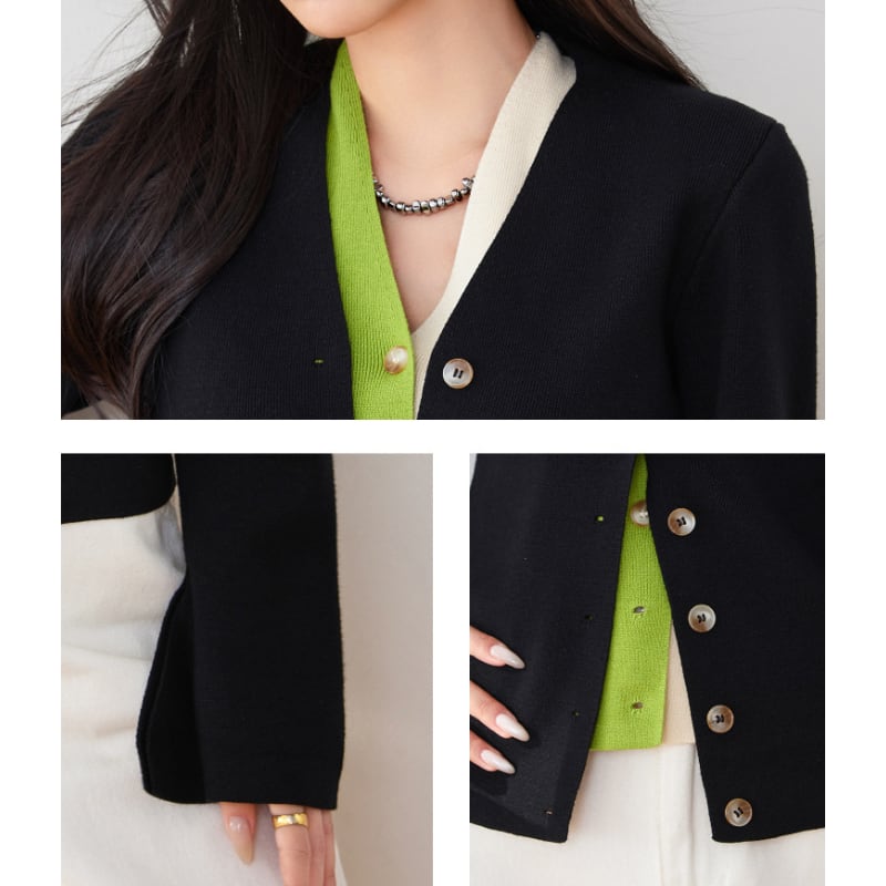 レイヤード風デザインが特徴のVネックニットカーディガン。 異素材切り替えが奥行きを演出し、1枚でこなれ感のあるスタイルに。 スリムなシルエットで上品に仕上がり、カジュアルにもキレイめにも活躍します。 【サイズ】 S 着丈 57cm 肩幅 35cm 胸囲 92cm 袖丈 63cm M 着丈 58cm 肩幅 36cm 胸囲 96cm 袖丈 64cm L 着丈 59cm 肩幅 37cm 胸囲 100cm 袖丈 65cm XL 着丈 60cm 肩幅 38cm 胸囲 104cm 袖丈 66cm ※測り方によって2~4㎝の差が生じる場合があります。 【モデル】 165cm 45kg Sサイズ着用 Shelluits☆トップページはこちら https://shop.shelluits.com/ 姉妹店◆gioielli bouquet ジョイエッリ ブーケ◆はこちら https://shop.gioielli-bouquet.com/ 【お届けについて】 こちらの商品は海外店舗より直接発送となる為、ご入金から 2~4週間前後で発送致します。 【注意事項】 ・タイミングによっては 商品在庫切れにより 注文キャンセルとさせていただく恐れもございますので、予めご了承くださいませ。 ・こちらは輸入品となります。日本製とは検品基準が異なる為、新品未使用品でもごくわずかな汚れや ほつれがある場合もございます。 ・仕入れ工場を変えることがあるため、記載サイズと若干異なる場合がございます。 ・商品の色味は、お手持ちのスマートフォンの画面によって実物と若干異なる場合がございます。 ・イメージ違いやサイズ交換等、お客さまご都合による交換、返品は対応出来かねますので ご了承ください。 **。**。**。**。**。**。**。 ↓ご購入前にこちらをお読みください https://shop.shelluits.com/about **。**。**。**。**。**。**。