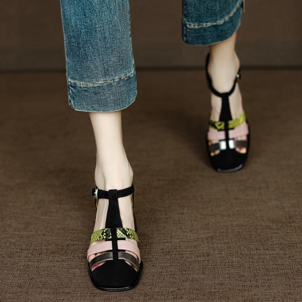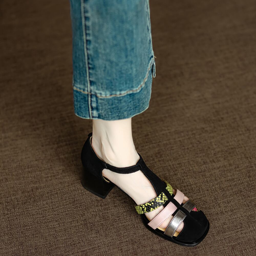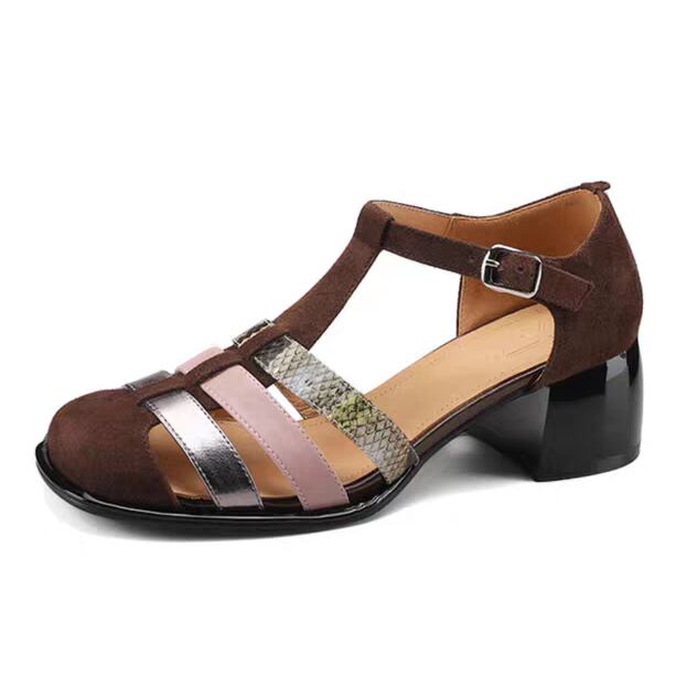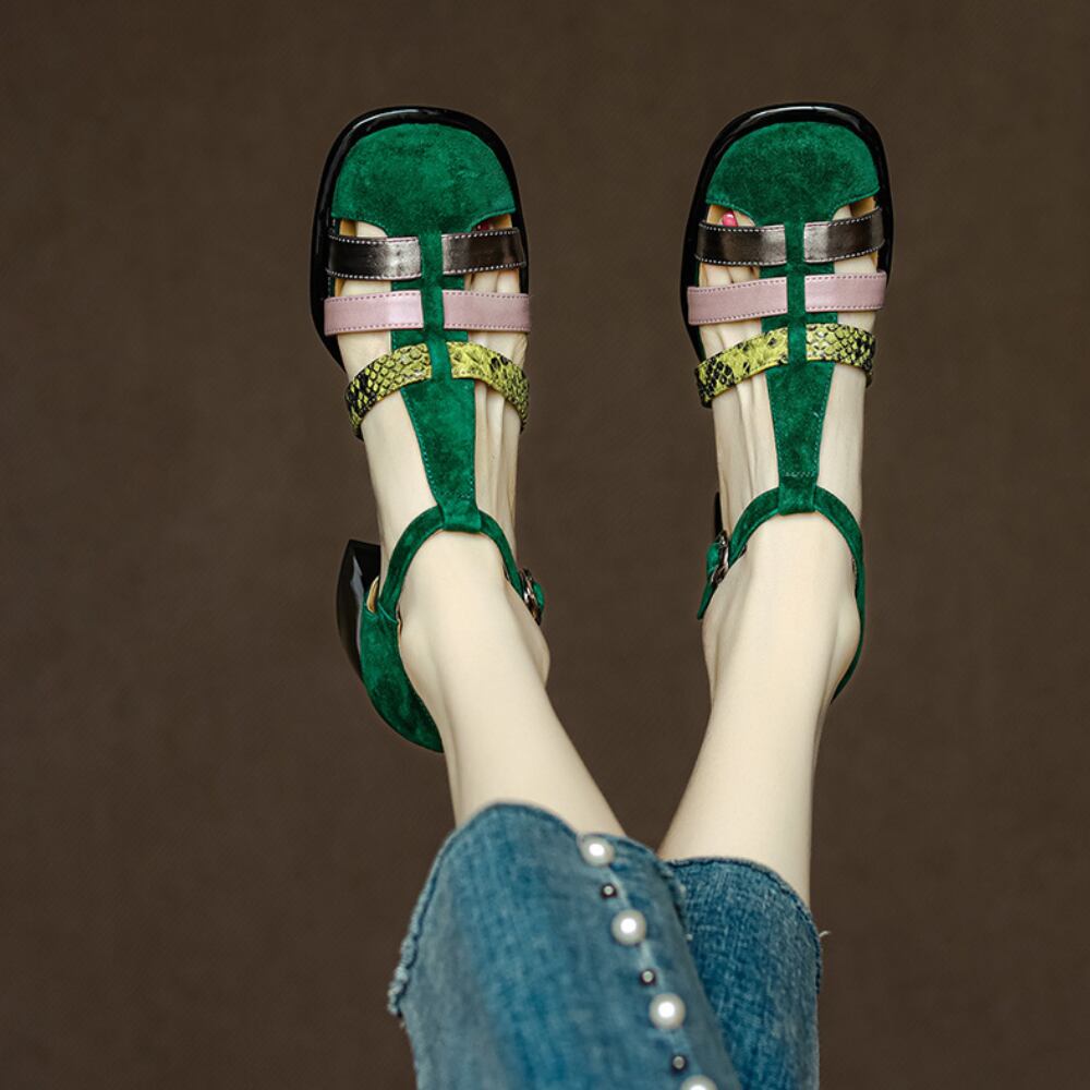 柔らかなスエード素材とTストラップが上品な印象のサンダル。 ひかえめな色味で遊んだカラーデザインがおシャれ。 安定感のあるチャンキーヒールで歩きやすさも◎ 【サイズ】 34 22.0cm 35 22.5cm 36 23.0cm 37 23.5cm 38 24.0cm 39 24.5cm (ヒール高さ 5cm) 【素材】 合成皮革 【カラー】 グリーン・ブラック・ブラウン Shelluits☆トップページはこちら https://shop.shelluits.com/ 姉妹店◆gioielli bouquet ジョイエッリ ブーケ◆はこちら https://shop.gioielli-bouquet.com/ 【お届けについて】 こちらの商品は海外店舗より直接発送となる為、ご入金から 2〜4週間前後で発送致します。 【注意事項】 ・タイミングによっては 商品在庫切れにより、注文キャンセルとさせていただく恐れもございますので、予めご了承くださいませ。 ・こちらは輸入品となります。日本製とは検品基準が異なる為、新品未使用品でもごくわずかな汚れや ほつれがある場合もございます。 ・商品の色味は、お手持ちのスマートフォンの画面によって実物と若干異なる場合がございます。 ・イメージ違いやサイズ交換等、お客さまご都合による交換、返品は対応出来かねますので ご了承ください。 **。**。**。**。**。**。**。 ↓ご購入前にこちらをお読みください https://shop.shelluits.com/about **。**。**。**。**。**。**。