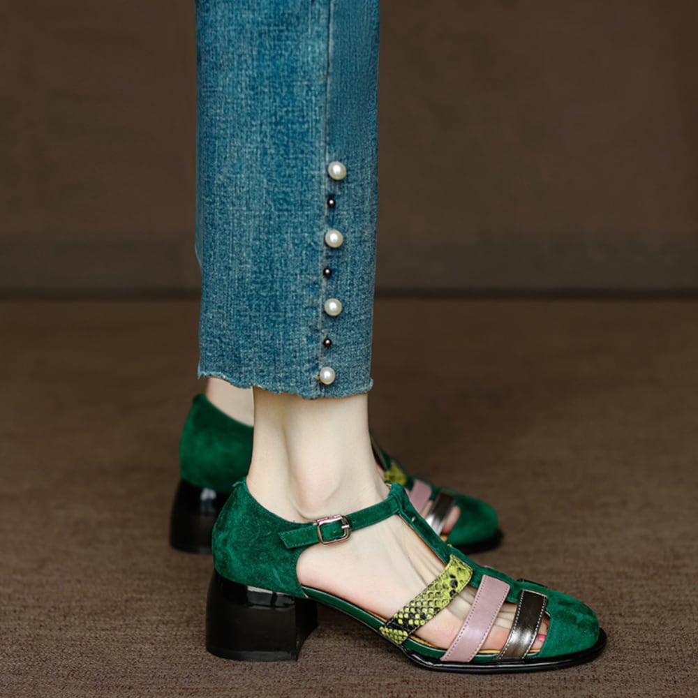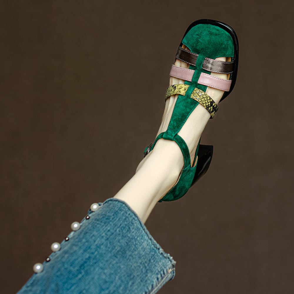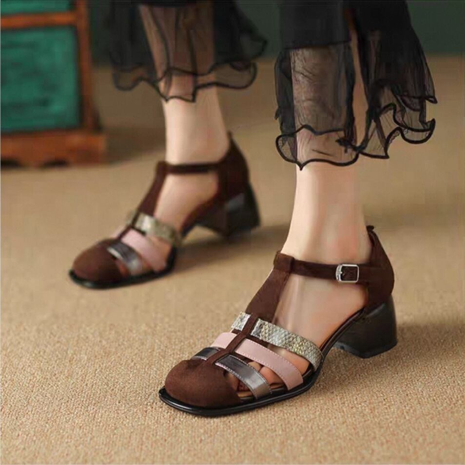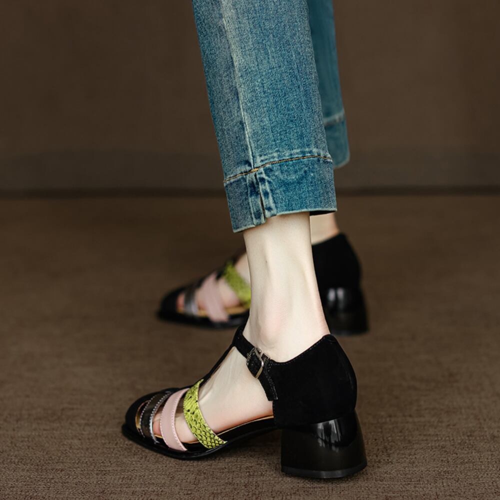 柔らかなスエード素材とTストラップが上品な印象のサンダル。 ひかえめな色味で遊んだカラーデザインがおシャれ。 安定感のあるチャンキーヒールで歩きやすさも◎ 【サイズ】 34 22.0cm 35 22.5cm 36 23.0cm 37 23.5cm 38 24.0cm 39 24.5cm (ヒール高さ 5cm) 【素材】 合成皮革 【カラー】 グリーン・ブラック・ブラウン Shelluits☆トップページはこちら https://shop.shelluits.com/ 姉妹店◆gioielli bouquet ジョイエッリ ブーケ◆はこちら https://shop.gioielli-bouquet.com/ 【お届けについて】 こちらの商品は海外店舗より直接発送となる為、ご入金から 2〜4週間前後で発送致します。 【注意事項】 ・タイミングによっては 商品在庫切れにより、注文キャンセルとさせていただく恐れもございますので、予めご了承くださいませ。 ・こちらは輸入品となります。日本製とは検品基準が異なる為、新品未使用品でもごくわずかな汚れや ほつれがある場合もございます。 ・商品の色味は、お手持ちのスマートフォンの画面によって実物と若干異なる場合がございます。 ・イメージ違いやサイズ交換等、お客さまご都合による交換、返品は対応出来かねますので ご了承ください。 **。**。**。**。**。**。**。 ↓ご購入前にこちらをお読みください https://shop.shelluits.com/about **。**。**。**。**。**。**。