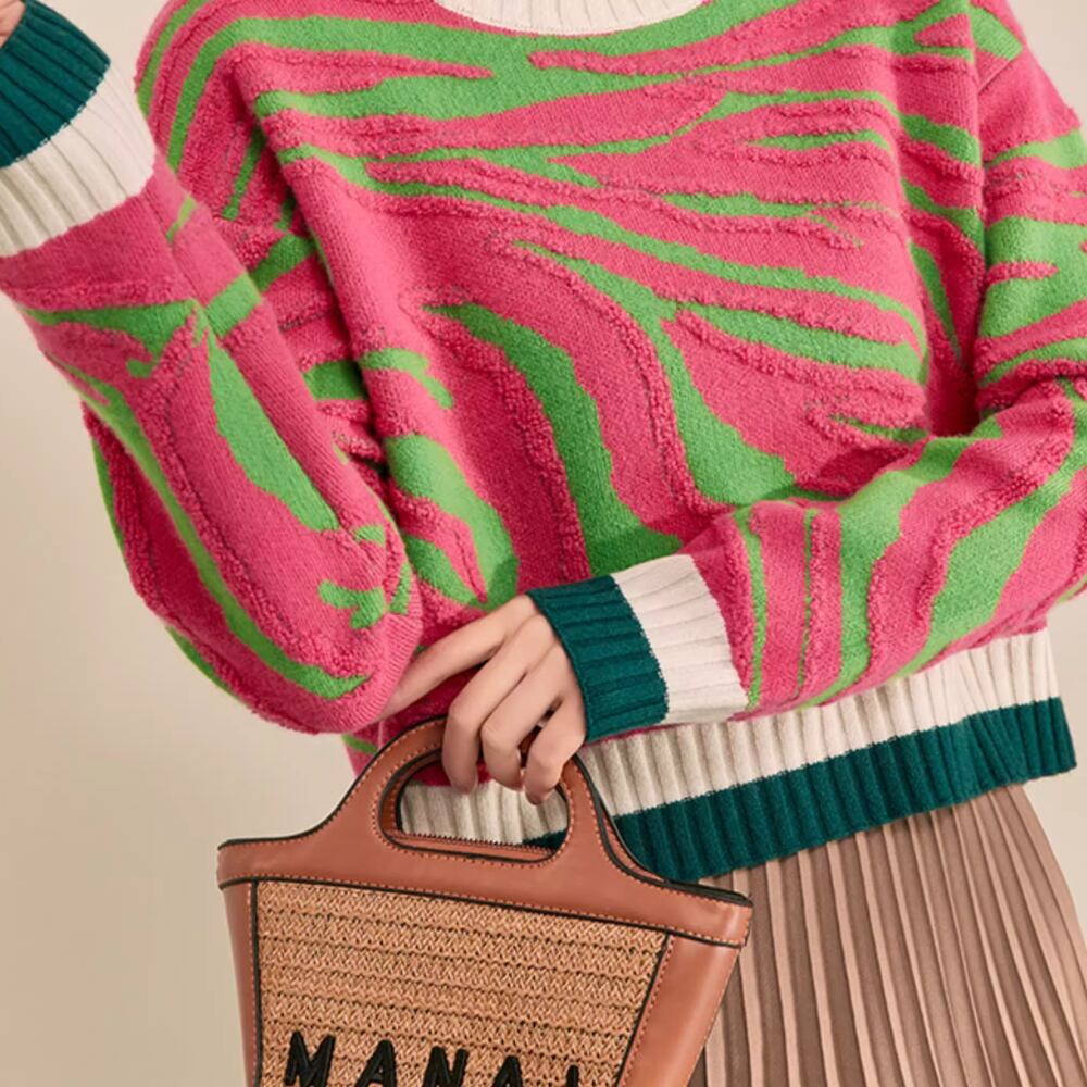 鮮烈なネオンピンク×グリーンのゼブラ柄が主役!