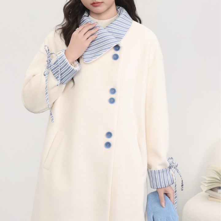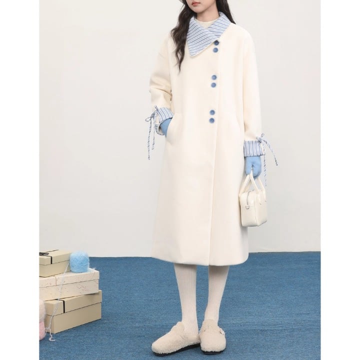 ミルキーホワイトにサックスブルーのボタンが映える!