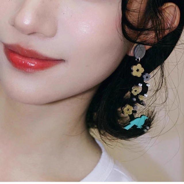 カラフルな花と鳥のモチーフが耳元で揺れる、個性的でアートなデザイン。 古風な「和」を思わせる柄に異彩のカラーなコントラストが粋! 【サイズ】 縦 83mm 横 28mm ※測り方によってわずかな差が生じる場合があります。 【カラー】 ピンク・グレー・レッド 【素材】 ピアス 925silver イヤリング 14kgold Shelluits☆トップページはこちら https://shop.shelluits.com/ 姉妹店◆gioielli bouquet ジョイエッリ ブーケ◆はこちら https://shop.gioielli-bouquet.com/ 【お届けについて】 こちらの商品は海外店舗より直接発送となる為、ご入金から 2〜4週間前後で発送致します。 【注意事項】 ・タイミングによっては 商品在庫切れにより 注文キャンセルとさせていただく恐れもございますので、予めご了承くださいませ。 ・こちらは輸入品となります。日本製とは検品基準が異なる為、新品未使用品でもごくわずかな汚れや ほつれがある場合もございます。 ・仕入れ工場を変えることがあるため、記載サイズと若干異なる場合がございます。 ・商品の色味は、お手持ちのスマートフォンの画面によって実物と若干異なる場合がございます。 ・イメージ違いやサイズ交換等、お客さまご都合による交換、返品は対応出来かねますので ご了承ください。 **。**。**。**。**。**。**。 ↓ご購入前にこちらをお読みください https://shop.shelluits.com/about **。**。**。**。**。**。**。