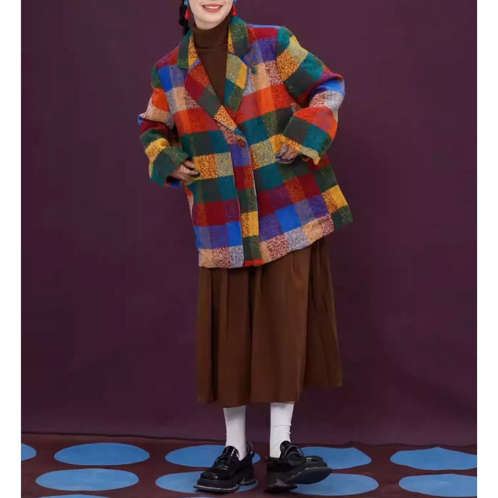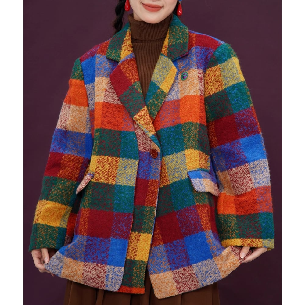 マルチカラー blockチェック テーラードジャケット (kai1243)