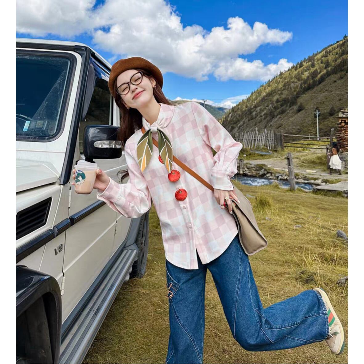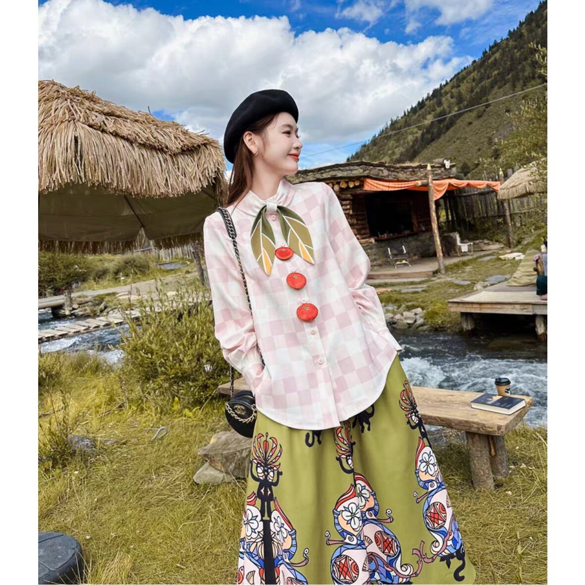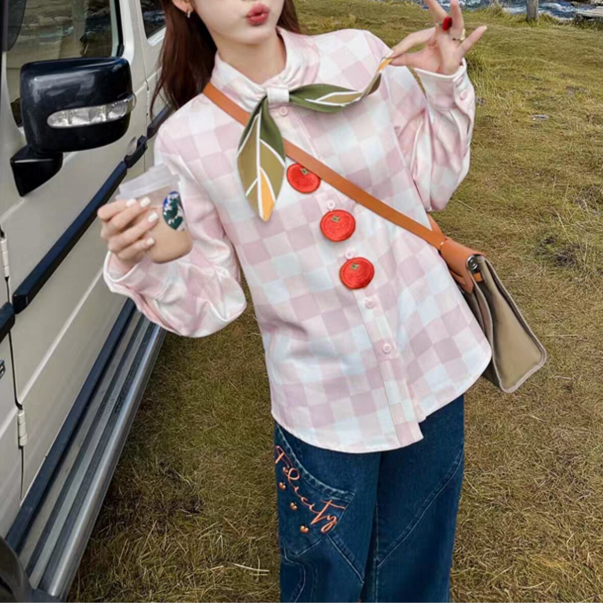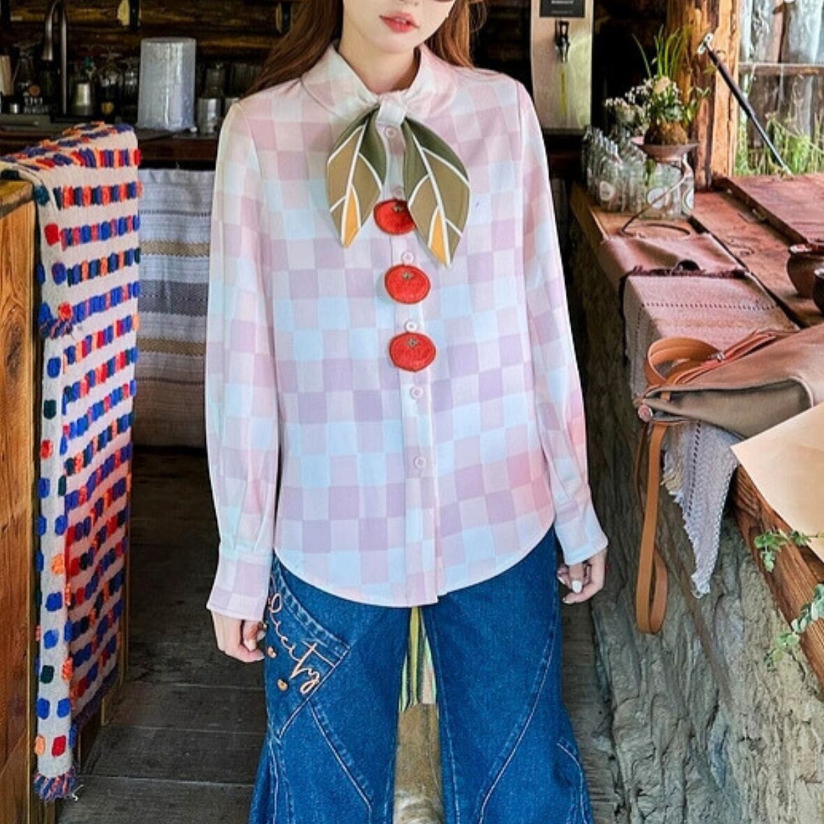 Boxピンクのジューシー赤果実シャツ(kai0983)