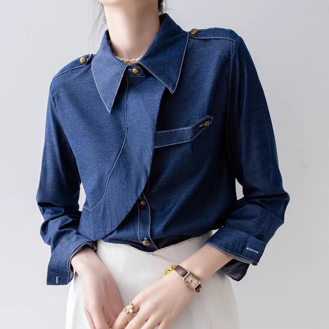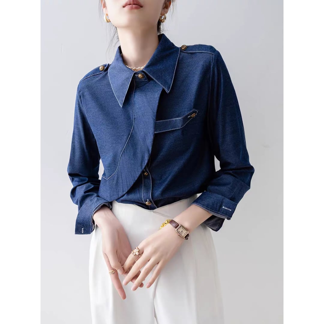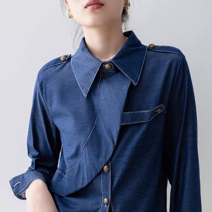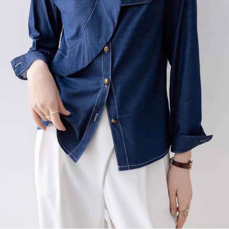 アシンメトリーなデザインとボタン飾りがカワイイ。 denim風カラーで着回しやすい◎ ちょっとした遊び心が光るベーシック寄りのシャツ。 【サイズ】 S 着丈 61cm 肩幅 38cm 胸囲 95cm 袖丈 58cm M 着丈 62cm 肩幅 39cm 胸囲 99cm 袖丈 59cm L 着丈 63cm 肩幅 40cm 胸囲 103cm 袖丈 60cm XL 着丈 64cm 肩幅 41cm 胸囲 107cm 袖丈 61cm ※測り方によって2〜4cmの差が生じる場合があります。 【モデル】 166cm Mサイズ着用 【生地】 ポリエステル Shelluits☆トップページはこちら https://shop.shelluits.com/ 姉妹店◆gioielli bouquet ジョイエッリ ブーケ◆はこちら https://shop.gioielli-bouquet.com/ 【お届けについて】 こちらの商品は海外店舗より直接発送となる為、ご入金から 2〜4週間前後で発送致します。 【注意事項】 ・タイミングによっては 商品在庫切れにより 注文キャンセルとさせていただく恐れもございますので、予めご了承くださいませ。 ・こちらは輸入品となります。日本製とは検品基準が異なる為、新品未使用品でもごくわずかな汚れや ほつれがある場合もございます。 ・仕入れ工場を変えることがあるため、記載サイズと若干異なる場合がございます。 ・商品の色味は、お手持ちのスマートフォンの画面によって実物と若干異なる場合がございます。 ・イメージ違いやサイズ交換等、お客さまご都合による交換、返品は対応出来かねますので ご了承ください。 **。**。**。**。**。**。**。 ↓ご購入前にこちらをお読みください https://shop.shelluits.com/about **。**。**。**。**。**。**。