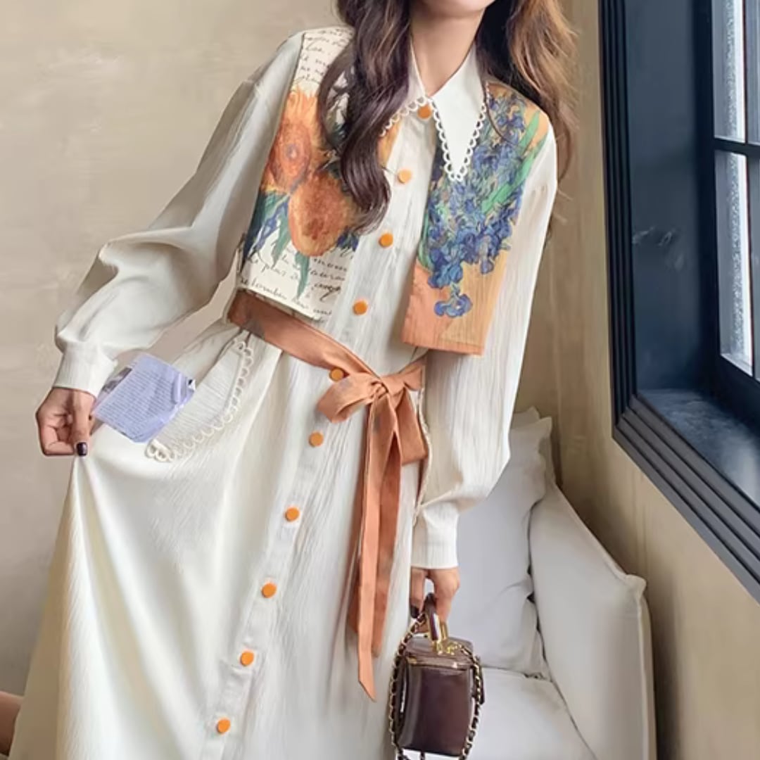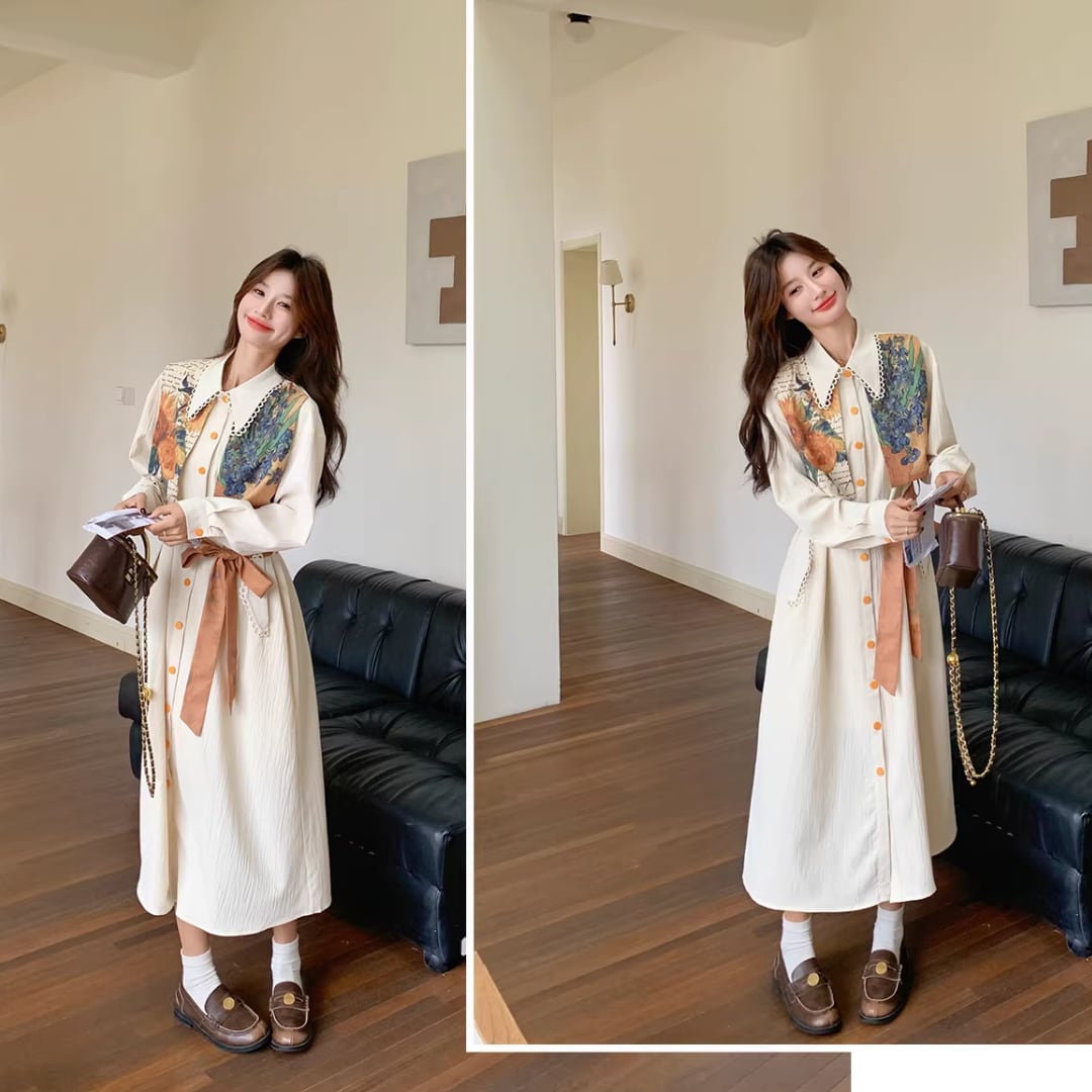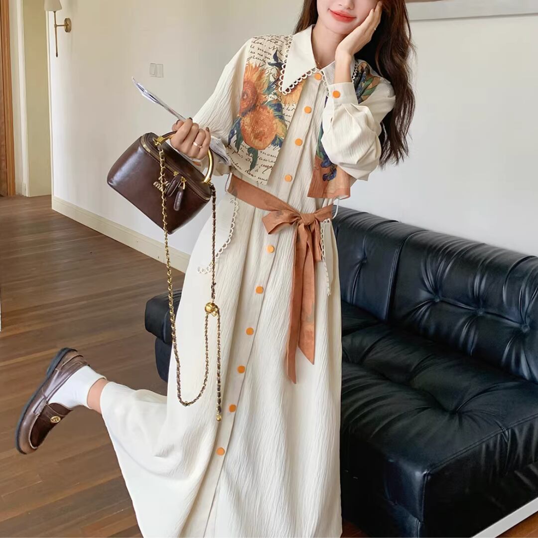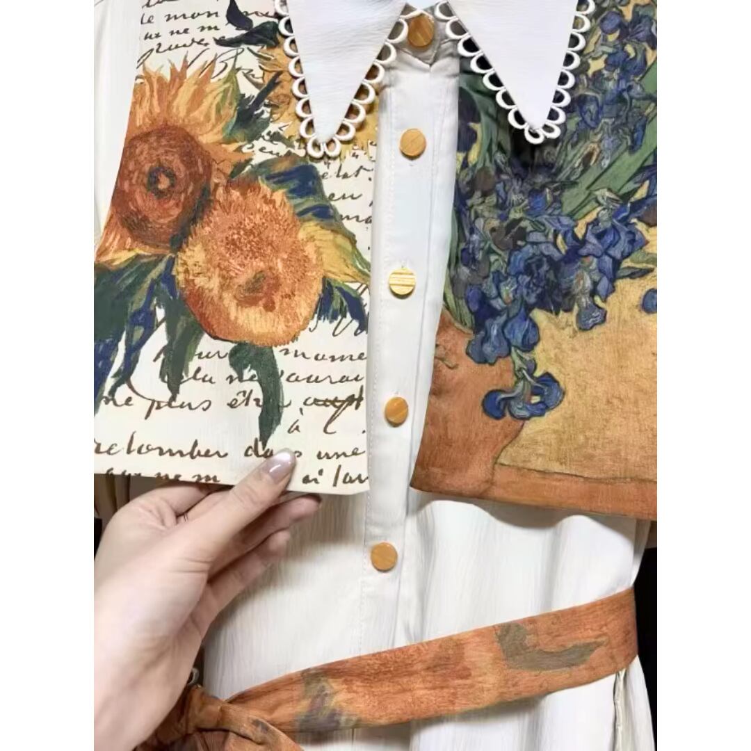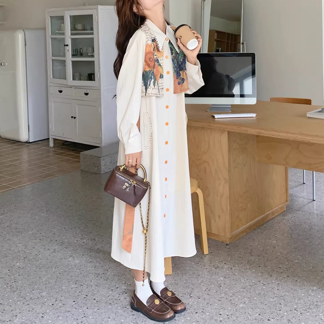 華やかな絵画プリントが目を引くエレガントなワンピース。 オレンジ色のアクセントカラーが映える。 ボタンや襟元のディテールまで可愛いデザイン。 リボンベルトでウエストマークして、スタイルアップ効果も◎ 【サイズ】 S 着丈 114cm 肩幅 51cm 胸囲 102cm 袖丈 49cm M 着丈 115cm 肩幅 52cm 胸囲 106cm 袖丈 50cm L 着丈 116cm 肩幅 53cm 胸囲 110cm 袖丈 51cm XL 着丈 117cm 肩幅 54cm 胸囲 114cm 袖丈 52cm ※測り方によって2〜4cmの差が生じる場合があります。 【モデル】 167cm Sサイズ着用 【生地】 ポリエステル Shelluits☆トップページはこちら https://shop.shelluits.com/ 姉妹店◆gioielli bouquet ジョイエッリ ブーケ◆はこちら https://shop.gioielli-bouquet.com/ 【お届けについて】 こちらの商品は海外店舗より直接発送となる為、ご入金から 2〜4週間前後で発送致します。 【注意事項】 ・タイミングによっては 商品在庫切れにより 注文キャンセルとさせていただく恐れもございますので、予めご了承くださいませ。 ・こちらは輸入品となります。日本製とは検品基準が異なる為、新品未使用品でもごくわずかな汚れや ほつれがある場合もございます。 ・仕入れ工場を変えることがあるため、記載サイズと若干異なる場合がございます。 ・商品の色味は、お手持ちのスマートフォンの画面によって実物と若干異なる場合がございます。 ・イメージ違いやサイズ交換等、お客さまご都合による交換、返品は対応出来かねますので ご了承ください。 **。**。**。**。**。**。**。 ↓ご購入前にこちらをお読みください https://shop.shelluits.com/about **。**。**。**。**。**。**。