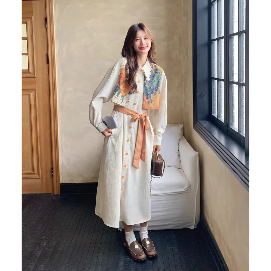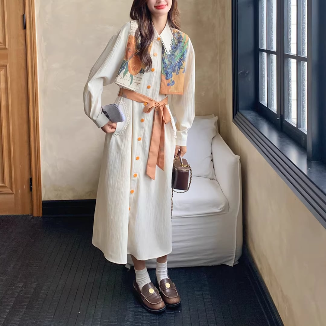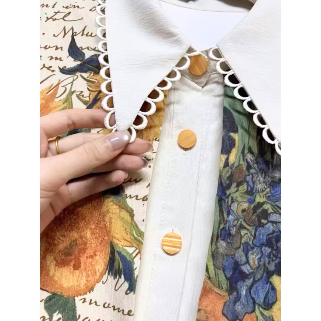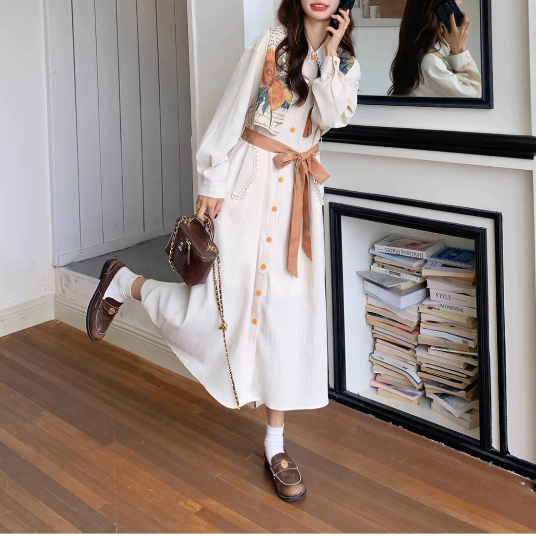華やかな絵画プリントが目を引くエレガントなワンピース。 オレンジ色のアクセントカラーが映える。 ボタンや襟元のディテールまで可愛いデザイン。 リボンベルトでウエストマークして、スタイルアップ効果も◎ 【サイズ】 S 着丈 114cm 肩幅 51cm 胸囲 102cm 袖丈 49cm M 着丈 115cm 肩幅 52cm 胸囲 106cm 袖丈 50cm L 着丈 116cm 肩幅 53cm 胸囲 110cm 袖丈 51cm XL 着丈 117cm 肩幅 54cm 胸囲 114cm 袖丈 52cm ※測り方によって2〜4cmの差が生じる場合があります。 【モデル】 167cm Sサイズ着用 【生地】 ポリエステル Shelluits☆トップページはこちら https://shop.shelluits.com/ 姉妹店◆gioielli bouquet ジョイエッリ ブーケ◆はこちら https://shop.gioielli-bouquet.com/ 【お届けについて】 こちらの商品は海外店舗より直接発送となる為、ご入金から 2〜4週間前後で発送致します。 【注意事項】 ・タイミングによっては 商品在庫切れにより 注文キャンセルとさせていただく恐れもございますので、予めご了承くださいませ。 ・こちらは輸入品となります。日本製とは検品基準が異なる為、新品未使用品でもごくわずかな汚れや ほつれがある場合もございます。 ・仕入れ工場を変えることがあるため、記載サイズと若干異なる場合がございます。 ・商品の色味は、お手持ちのスマートフォンの画面によって実物と若干異なる場合がございます。 ・イメージ違いやサイズ交換等、お客さまご都合による交換、返品は対応出来かねますので ご了承ください。 **。**。**。**。**。**。**。 ↓ご購入前にこちらをお読みください https://shop.shelluits.com/about **。**。**。**。**。**。**。