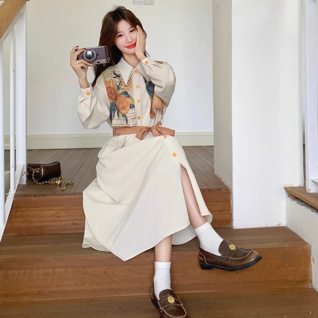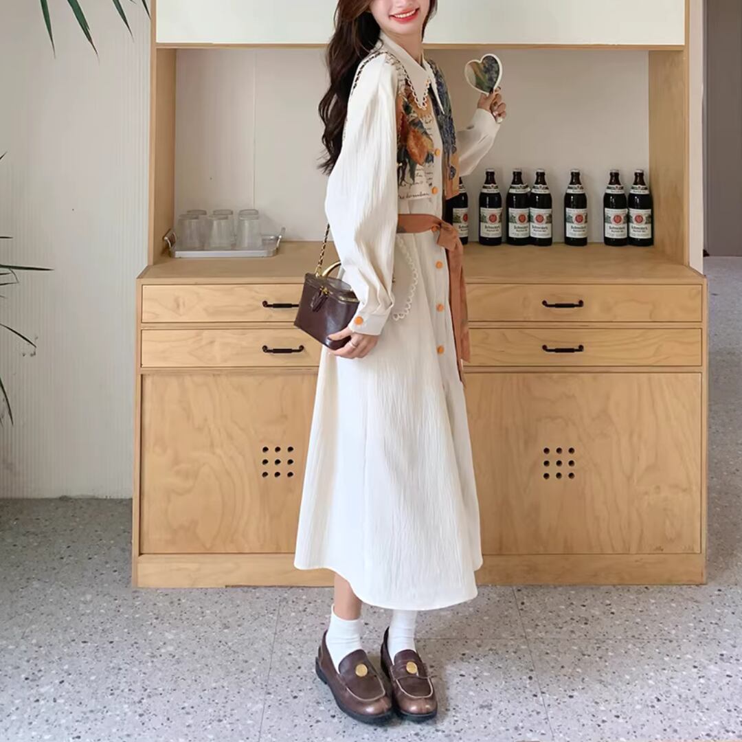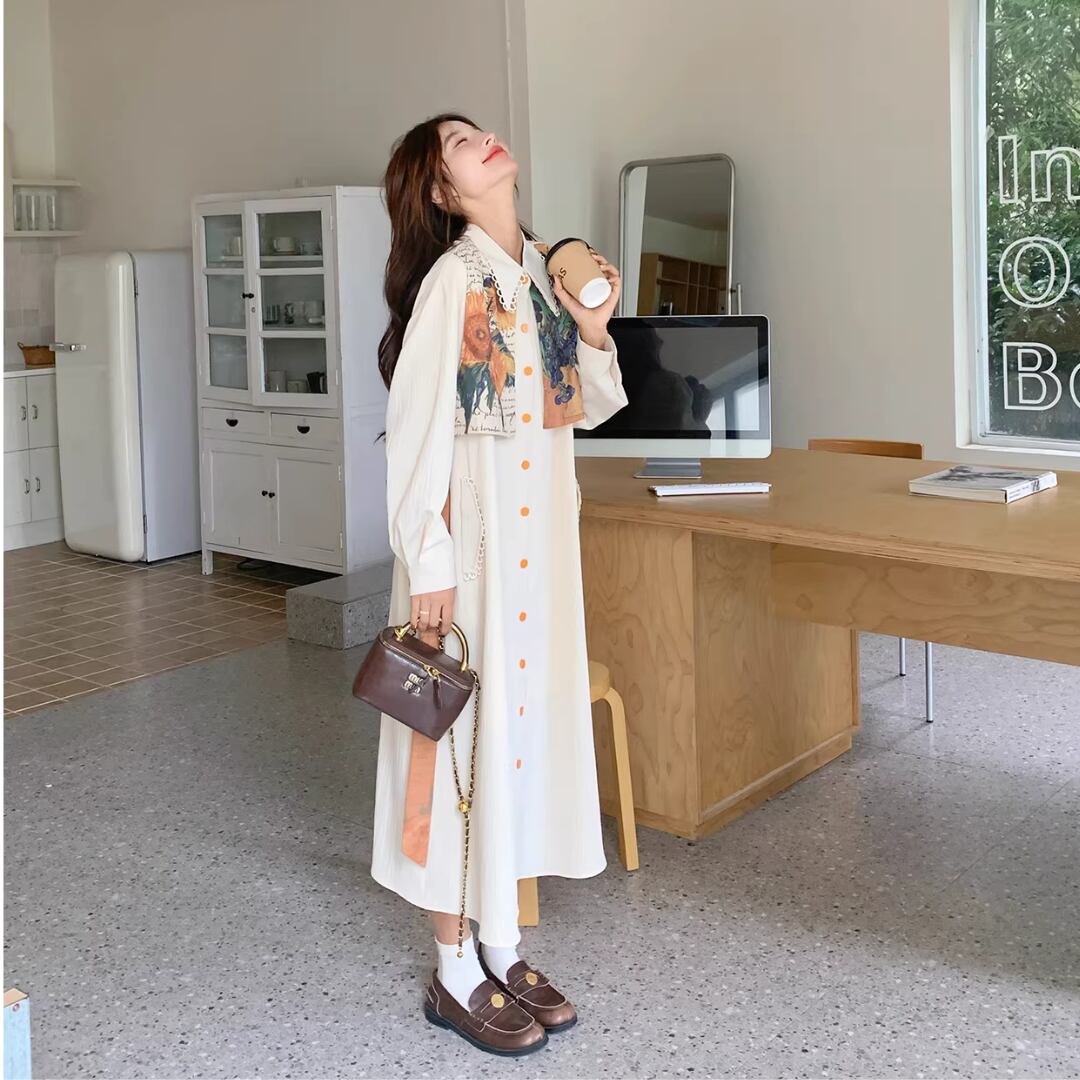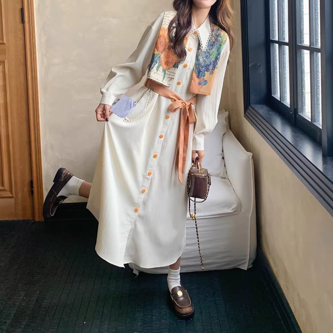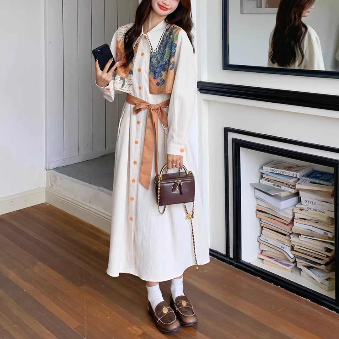 華やかな絵画プリントが目を引くエレガントなワンピース。 オレンジ色のアクセントカラーが映える。 ボタンや襟元のディテールまで可愛いデザイン。 リボンベルトでウエストマークして、スタイルアップ効果も◎ 【サイズ】 S 着丈 114cm 肩幅 51cm 胸囲 102cm 袖丈 49cm M 着丈 115cm 肩幅 52cm 胸囲 106cm 袖丈 50cm L 着丈 116cm 肩幅 53cm 胸囲 110cm 袖丈 51cm XL 着丈 117cm 肩幅 54cm 胸囲 114cm 袖丈 52cm ※測り方によって2〜4cmの差が生じる場合があります。 【モデル】 167cm Sサイズ着用 【生地】 ポリエステル Shelluits☆トップページはこちら https://shop.shelluits.com/ 姉妹店◆gioielli bouquet ジョイエッリ ブーケ◆はこちら https://shop.gioielli-bouquet.com/ 【お届けについて】 こちらの商品は海外店舗より直接発送となる為、ご入金から 2〜4週間前後で発送致します。 【注意事項】 ・タイミングによっては 商品在庫切れにより 注文キャンセルとさせていただく恐れもございますので、予めご了承くださいませ。 ・こちらは輸入品となります。日本製とは検品基準が異なる為、新品未使用品でもごくわずかな汚れや ほつれがある場合もございます。 ・仕入れ工場を変えることがあるため、記載サイズと若干異なる場合がございます。 ・商品の色味は、お手持ちのスマートフォンの画面によって実物と若干異なる場合がございます。 ・イメージ違いやサイズ交換等、お客さまご都合による交換、返品は対応出来かねますので ご了承ください。 **。**。**。**。**。**。**。 ↓ご購入前にこちらをお読みください https://shop.shelluits.com/about **。**。**。**。**。**。**。
