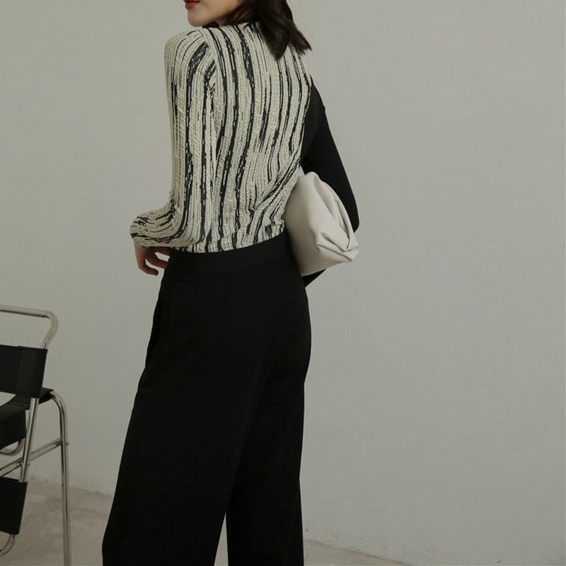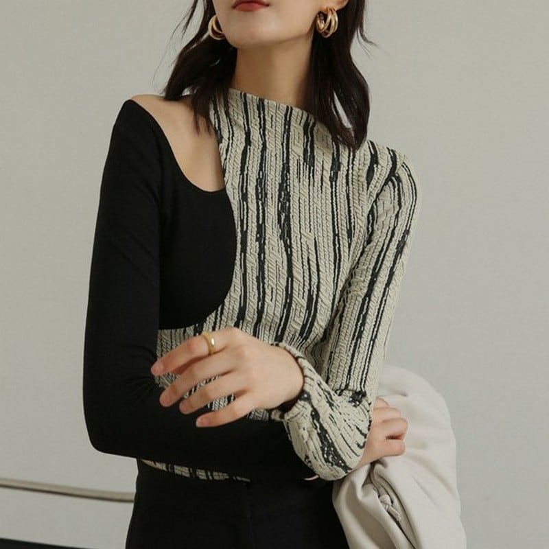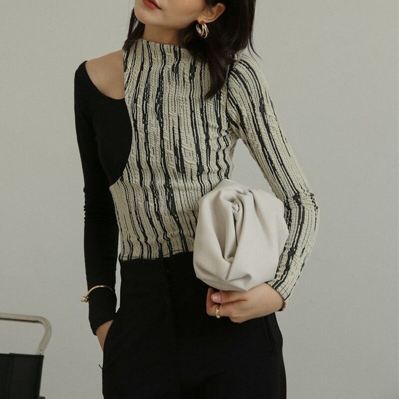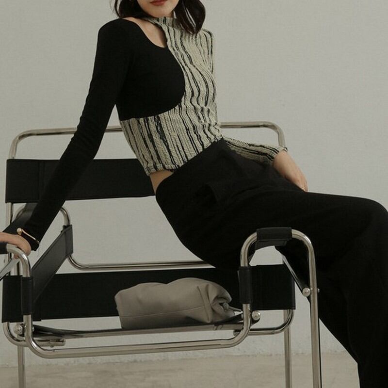 肩出しではなく、鎖骨出し。ちょっとだけセクシーにも、カッコよくも着られる一枚。