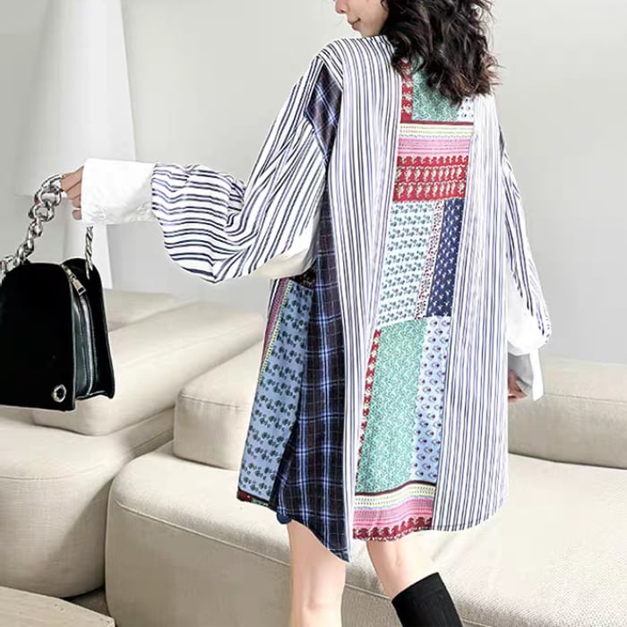(※デニム生地はデニムカラーの素材に変更される場合がございます。また、背中のパッチワーク部分については、生地のカットにより柄の出方に個体差が出る場合がございます。)