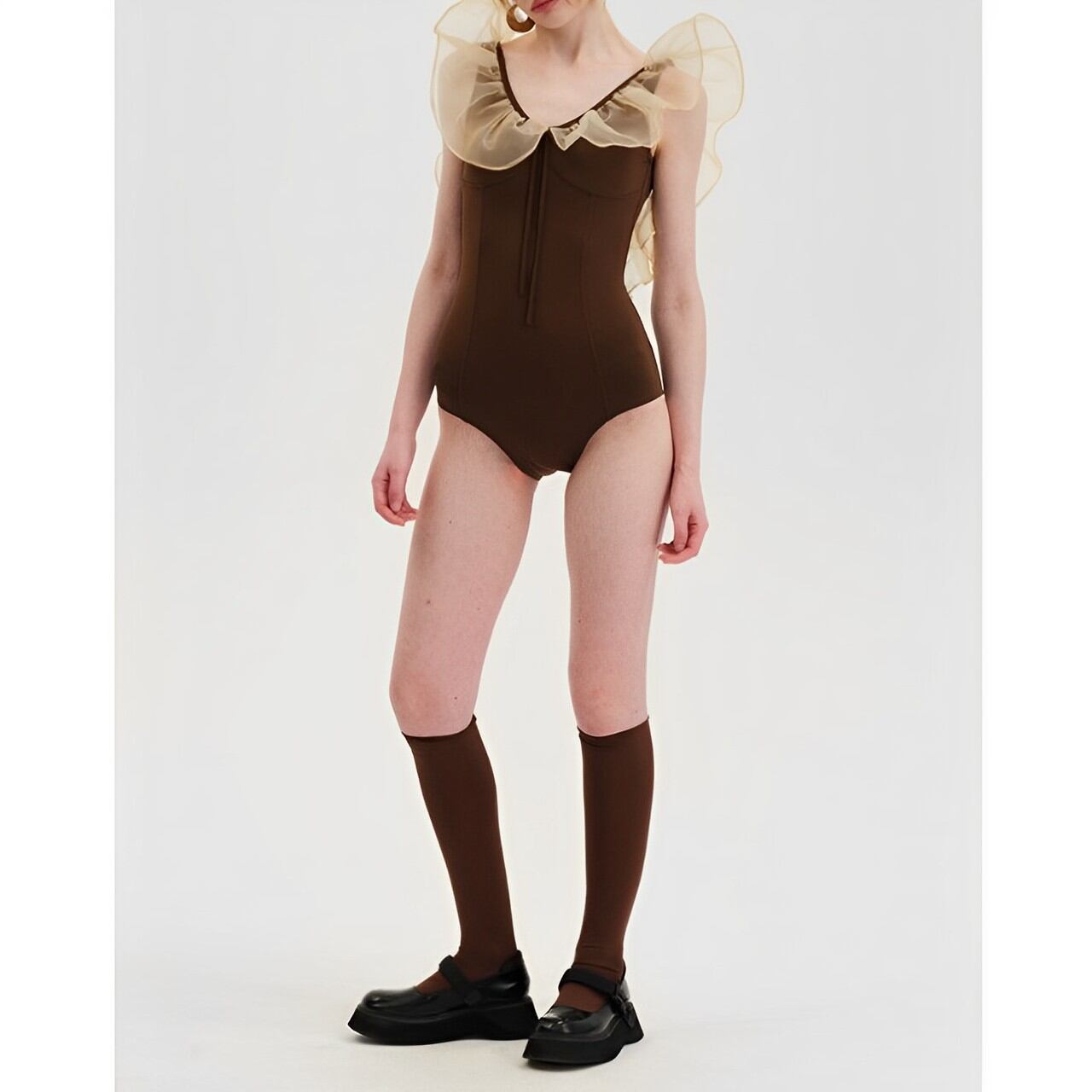 【Swim Wear】大きなフリルのBrown水着 (kai0340)
