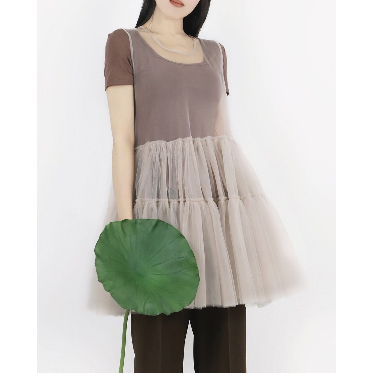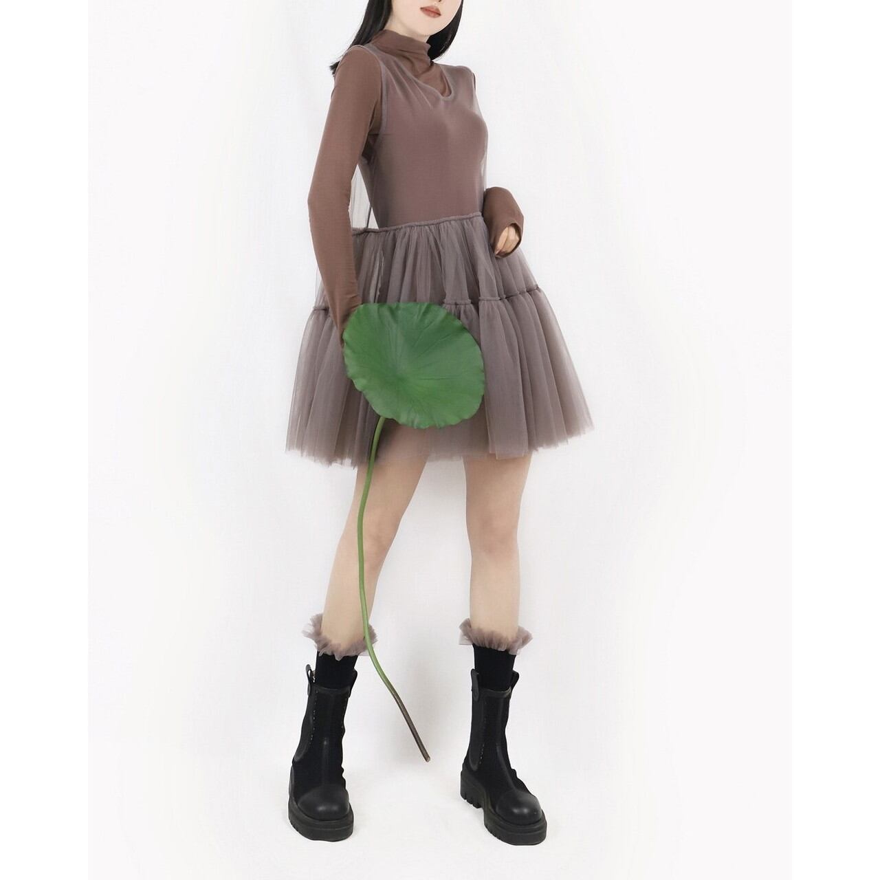 フワフワのチュールミニスカートが可愛いワンピース。 絶妙な7色のカラーとシアーな質感でレイヤードスタイルがおシャれに決まる1着。 【サイズ】 F 着丈 78cm 胸囲 98cm 肩幅 36cm ※測り方によって2〜4cmの差が生じる場合があります。 【カラー】 パープル・アプリコット・ダスティピンク・ダークブラウン・グリーン・ブラック・ホワイト 【モデル】 163cm 47.5kg 【生地】 ナイロン Shelluits☆トップページはこちら https://shop.shelluits.com/ 姉妹店◆gioielli bouquet ジョイエッリ ブーケ◆はこちら https://shop.gioielli-bouquet.com/ 【お届けについて】 こちらの商品は海外店舗より直接発送となる為、ご入金から 2〜4週間前後で発送致します。 【注意事項】 ・タイミングによっては 商品在庫切れにより 注文キャンセルとさせていただく恐れもございますので、予めご了承くださいませ。 ・こちらは輸入品となります。日本製とは検品基準が異なる為、新品未使用品でもごくわずかな汚れや ほつれがある場合もございます。 ・仕入れ工場を変えることがあるため、記載サイズと若干異なる場合がございます。 ・商品の色味は、お手持ちのスマートフォンの画面によって実物と若干異なる場合がございます。 ・イメージ違いやサイズ交換等、お客さまご都合による交換、返品は対応出来かねますので ご了承ください。 **。**。**。**。**。**。**。 ↓ご購入前にこちらをお読みください https://shop.shelluits.com/about **。**。**。**。**。**。**。