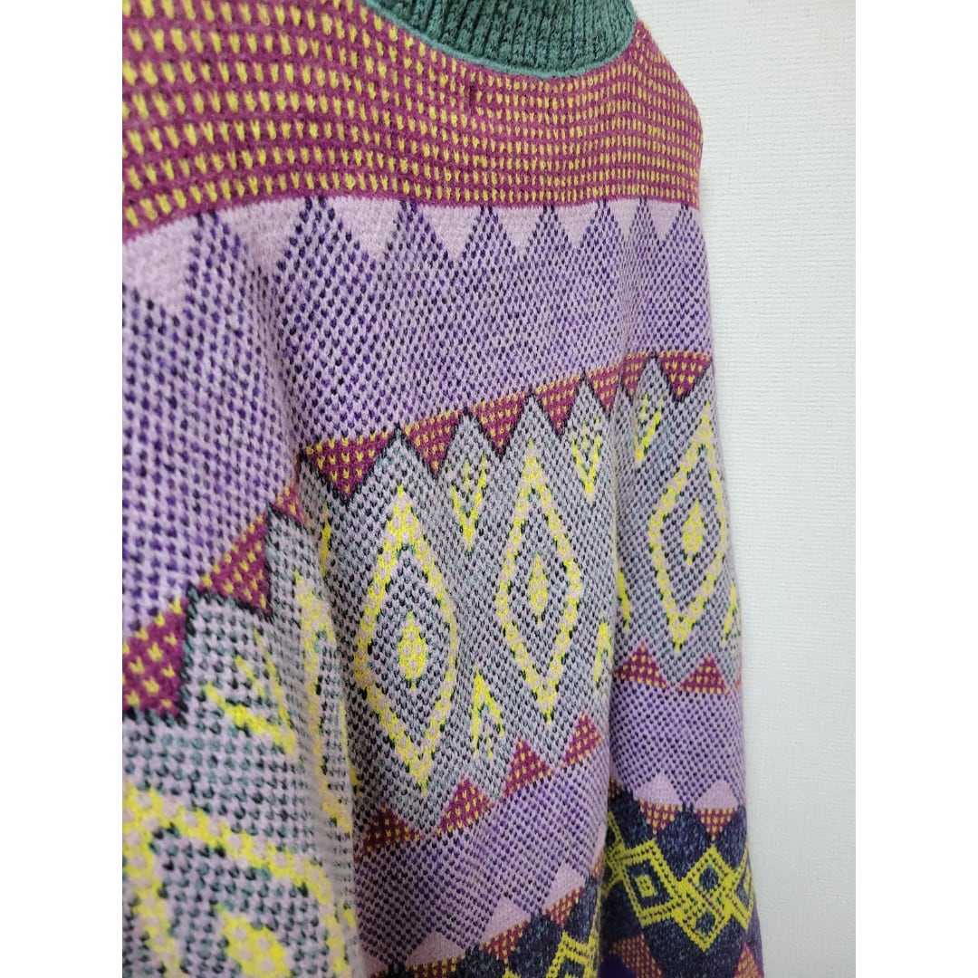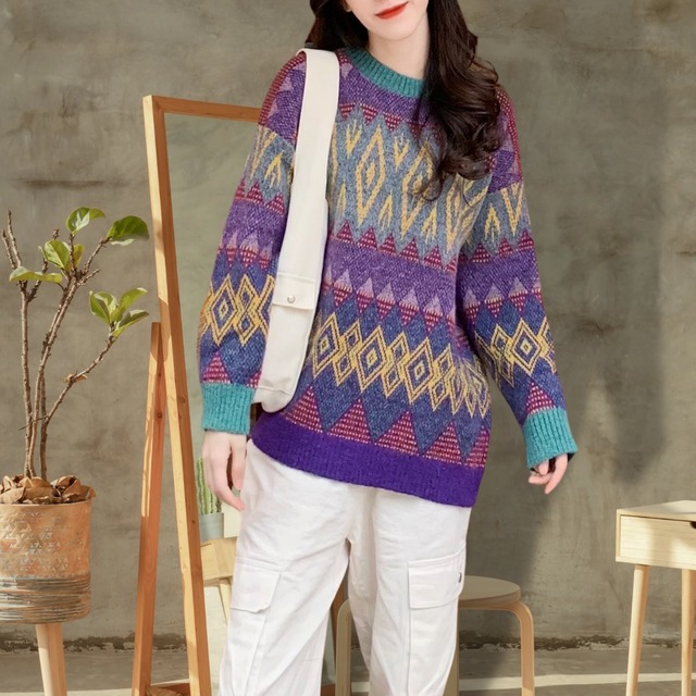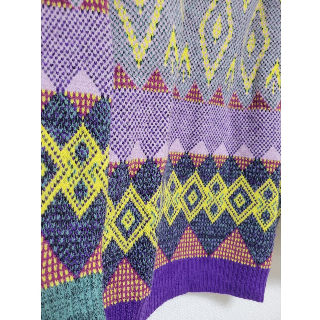 パープル、グリーン、イエロー…絶妙なカラー配色と見てて飽きない柄デザインが個性的なニット。 襟つきシャツをインナーにするのも相性◎ Simpleカラーのアウターの下から覗くこのニットは、めちゃくちゃ映える! 【サイズ】 S 着丈 60cm 肩幅 37cm 胸囲 94cm 袖丈 60cm M 着丈 61cm 肩幅 38cm 胸囲 98cm 袖丈 61cm L 着丈 62cm 肩幅 39cm 胸囲 102cm 袖丈 62cm XL 着丈 63cm 肩幅 40cm 胸囲 106cm 袖丈63 cm ※測り方によって2~4㎝の差が生じる場合があります。 Shelluits☆トップページはこちら https://shop.shelluits.com/ 姉妹店◆gioielli bouquet ジョイエッリ ブーケ◆はこちら https://shop.gioielli-bouquet.com/ 【お届けについて】 こちらの商品は海外店舗より直接発送となる為、ご入金から 2~4週間前後で発送致します。 【注意事項】 ・タイミングによっては 商品在庫切れにより 注文キャンセルとさせていただく恐れもございますので、予めご了承くださいませ。 ・こちらは輸入品となります。日本製とは検品基準が異なる為、新品未使用品でもごくわずかな汚れや ほつれがある場合もございます。 ・仕入れ工場を変えることがあるため、記載サイズと若干異なる場合がございます。 ・商品の色味は、お手持ちのスマートフォンの画面によって実物と若干異なる場合がございます。 ・イメージ違いやサイズ交換等、お客さまご都合による交換、返品は対応出来かねますので ご了承ください。 **。**。**。**。**。**。**。 ↓ご購入前にこちらをお読みください https://shop.shelluits.com/about **。**。**。**。**。**。**。
