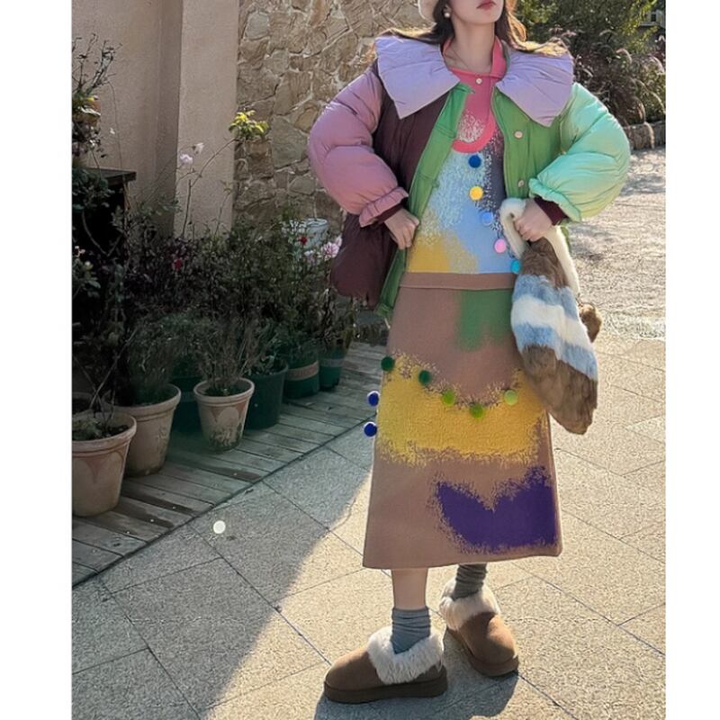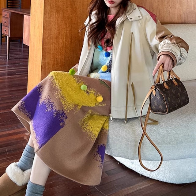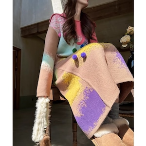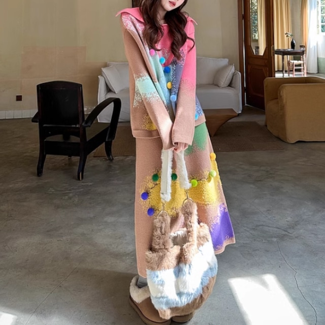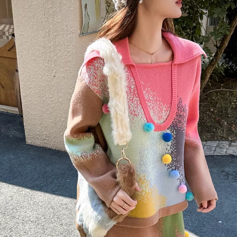 【早納】カラフルポンポン付 mix-color ニット(kai0510)