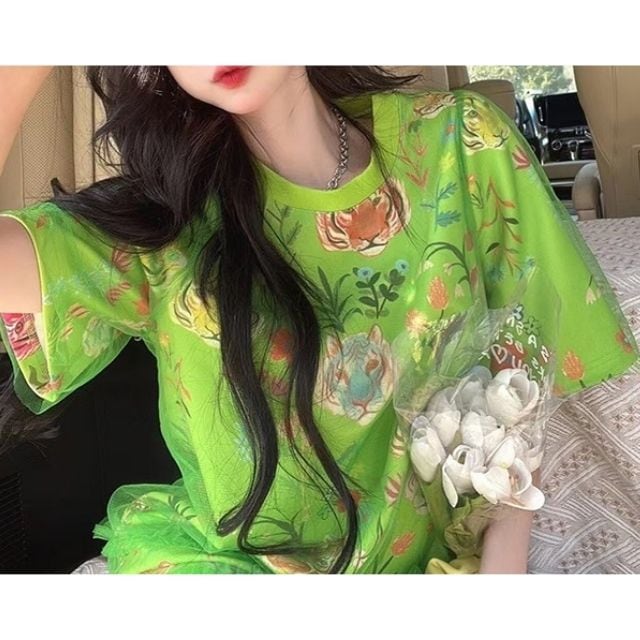 カラフルな虎柄デザインがおシャれなチュールドッキングワンピース。