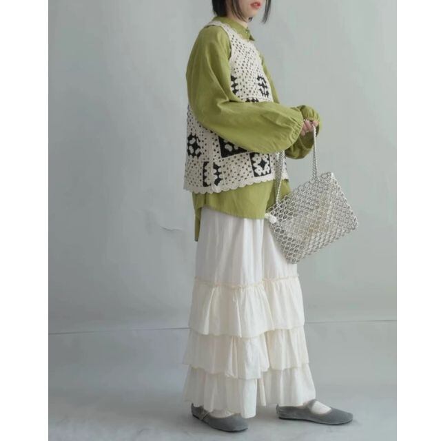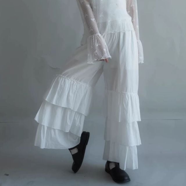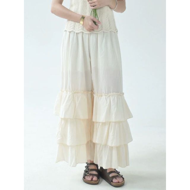ふんわりとボリューム感のあるティアードデザインパンツ。